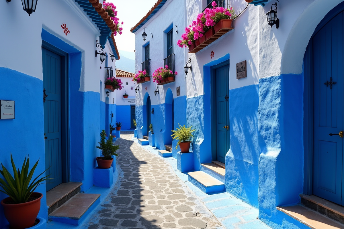 - Chefchaouen : la ville bleue du Rif, célèbre pour ses maisons indigo et ses panoramas montagneux.